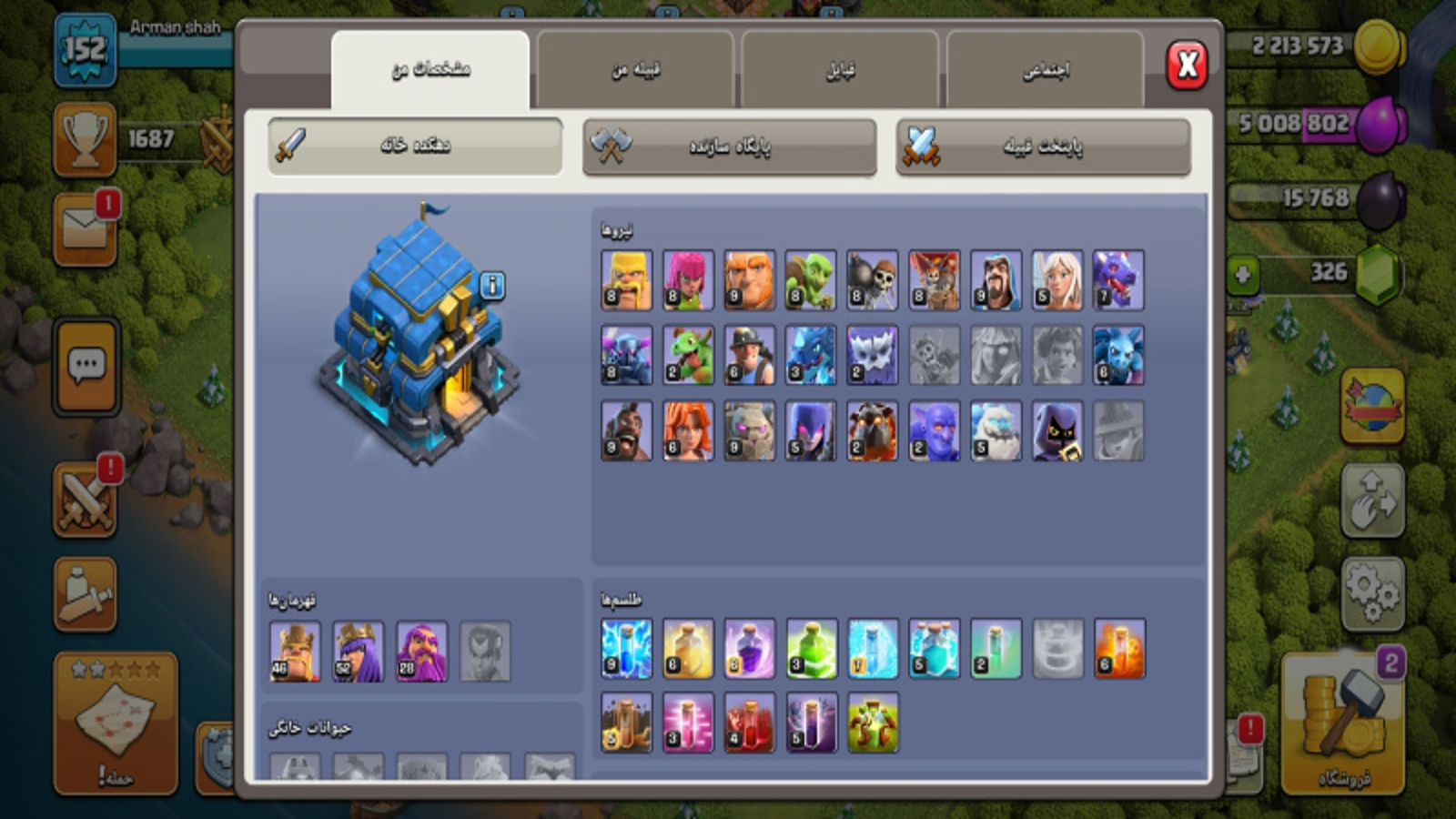 اکانت کلش آف کلنز تانهال ۱۲ لول ۱۵۲ مکس و کلن لول ۷ قیمتشو خیلی پایین گذاشتم که زود فروش بره چون پول لازمم.